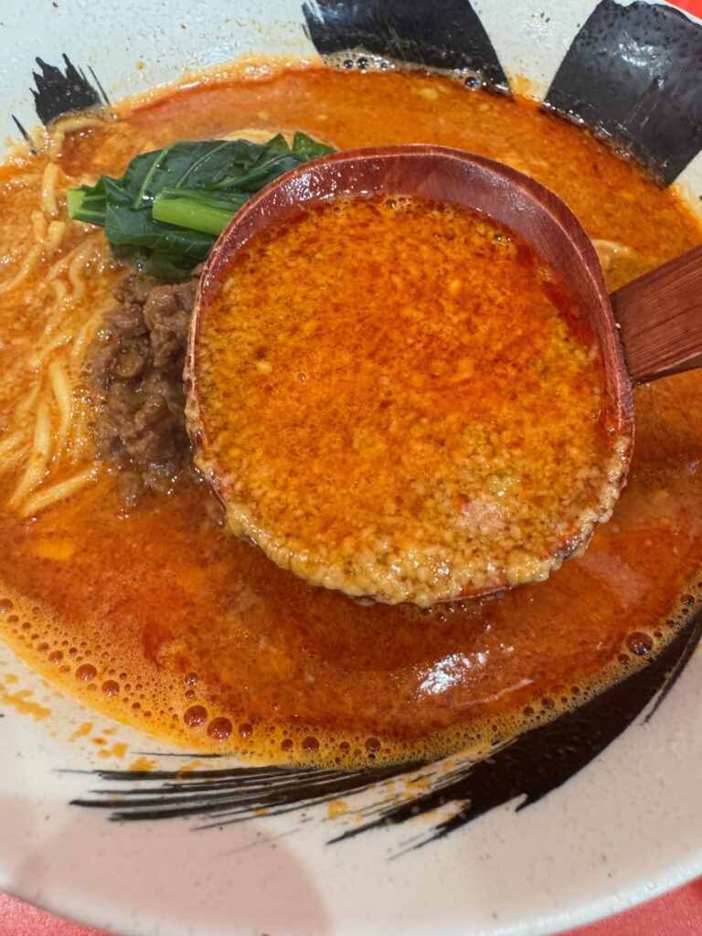 スープをひと口飲むと、ごまの香りがふわっと広がり、香ばしさとコクが際立ちます。